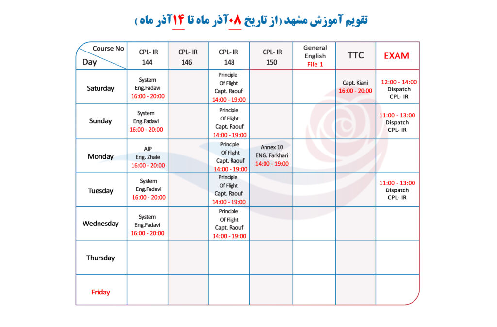 آموزش کلیه دوره های خلبانی از مقدماتی تا پیشرفته جهت هواپیماهای تک و دو موتوره را میتوانید با کادری از اساتید برجسته و خلبانان با تجربه و همچنین مجهزترین و بروزترین تجهیزات سخت افزاری، نرم افزاری و هواپیماهای آموزشی تجربه نمایید.